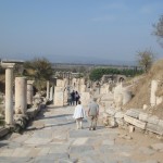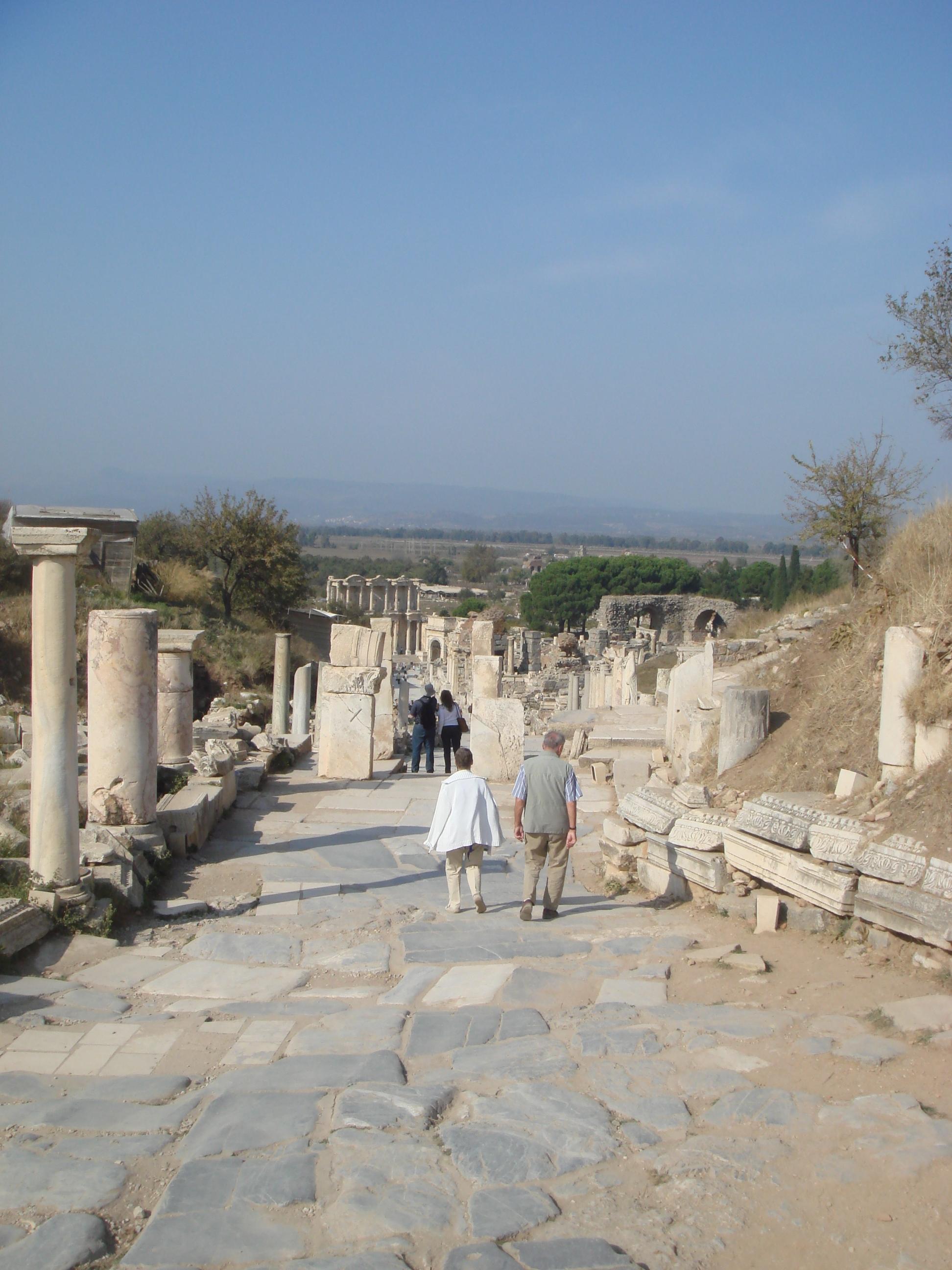 Akabinde ve detayında vira bismillah deyip koyulduk yola Efes’e gitmek için. Selçuk efes arası yaklaşık 3 km. İşte ister minibüs ile ister yürüyerek bu yolu katetmek mümkün ve biz yürümeği seçtik ve kesinlikle pişman değiliz.Çünkü Selçuk’un eski belediye başkanlarından birinin diktirdiği dut ve çınar ağaçlarından oluşan çok güzel bir ağaçlı yolda yaklaşık yarım saat yürüme ve bol bol fotoğraf çektirme fırsatı bulduk.