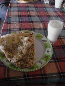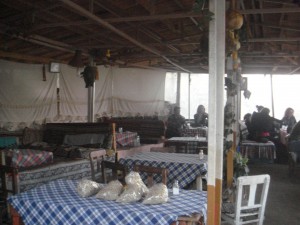 İşte bu resimde gördüğünüz yer, Şirince’de en manzaralı köy lokantalarından biri, adı pervin teyzenin yeri. Bunun gibi onlarca gözlemeci ya da lokanta bulmak mümkün Şirince’de. Ama biz burayı seçtik, pişman değiliz, bir daha olsa yine aynı yerde, yer sofrasına oturur aşağıda gördüğünüz gözlemeyi afiyetle yer, ayranı bir güzel içerim 🙂